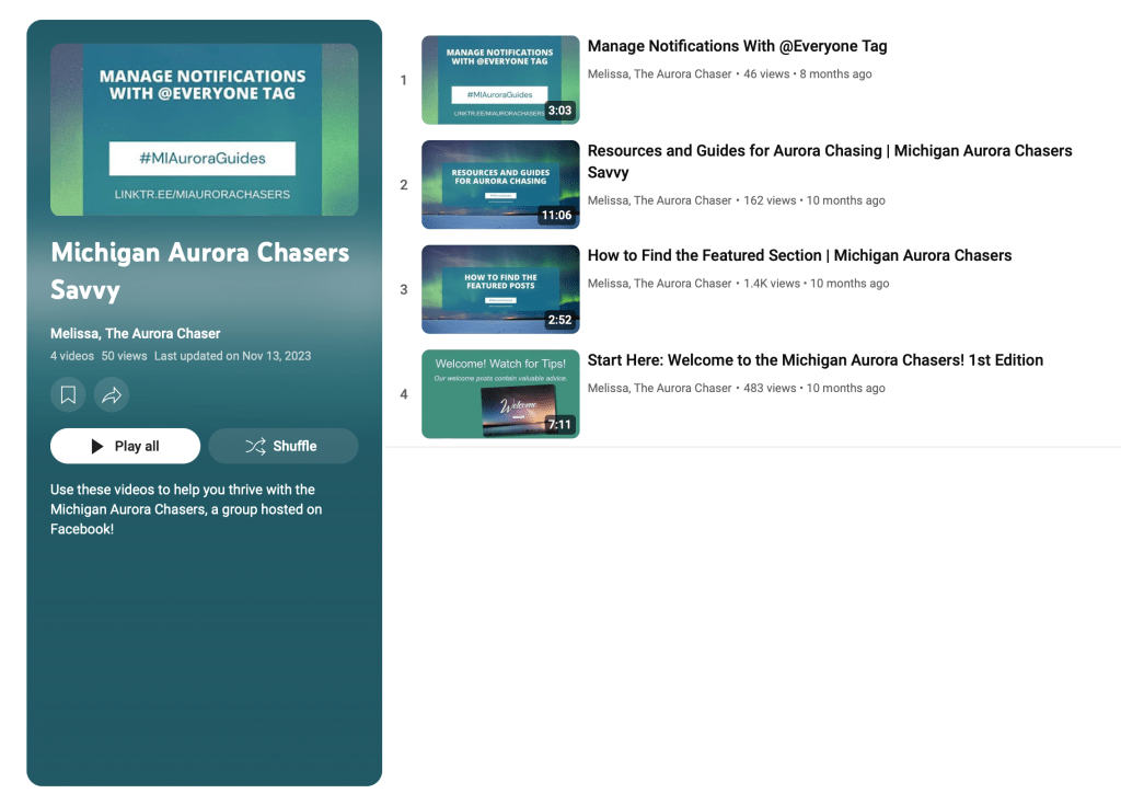 A video playlist is also in development to help Michigan Aurora Chasers understand how to get the most out of the group. You can view all of these videos on the playlist called Michigan Aurora Chasers Savvy.